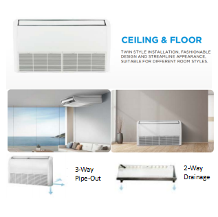 ooling power (to handle high temperatures), humidity control (since many areas are humid), energy efficiency (to keep electricity costs low), and durability (to withstand dust and occasional voltage fluctuations),this ceiling & floor indoor unit is Ideal for larger spaces like offices, churches, or big living rooms. They’re mounted in the ceiling, so they save wall space and spread cool air evenly.