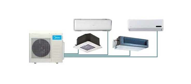 Systems with three indoor units are equipped with reliable DC-inverter compressors with reduced noise levels and a wide range of compressor rotation speed adjustment. To effectively control the operation of the system, an original and reliable algorithm was used to coordinate the performance of the compressor, fan motor and electronic expansion valves.