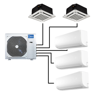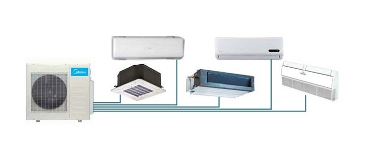 Systems with three indoor units are equipped with reliable DC-inverter compressors with reduced noise levels and a wide range of compressor rotation speed adjustment. To effectively control the operation of the system, an original and reliable algorithm was used to coordinate the performance of the compressor, fan motor and electronic expansion valves.