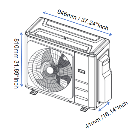 28K Oudoor Dimension Unit Product Size Packing Size Height (H in / mm 26.5" / 673mm 29.53" / 750mm Width / W in /mm 35.04" / 890mm 40.55" / 1030mm Depth / W in / mm 13.46" / 342mm 17.24" / 438mm Weight Lbs / KG 100.31 / 45.5 408.69 / 49.3
