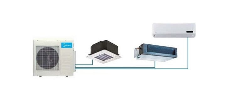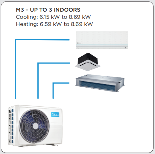 1-Drive-3 Different Indoor unit: Cassette, A6 Duct, Wall-mounted Indoor.
